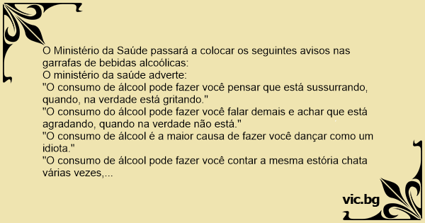 O Ministério da Saúde passará a colocar os seguintes avisos nas garrafas de bebidas alcoólicas: