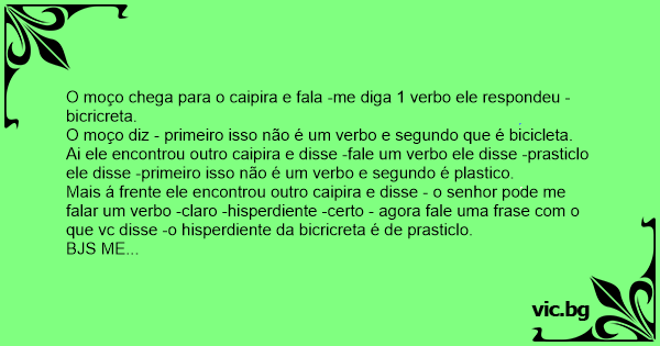O moço chega para o caipira e fala -me diga 1 verbo ele respondeu -bicricreta.