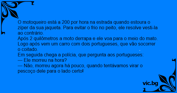 — Não, morreu agora há pouco, quando tentávamos virar o pescoço dele para o lado certo!