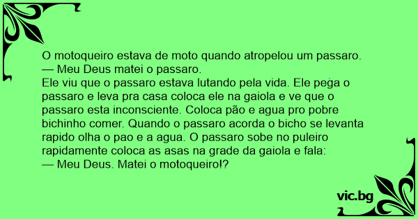 — Meu Deus matei o passaro.