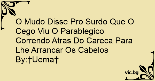 O Mudo Disse Pro Surdo Que O Cego Viu O Parablegico Correndo Atras Do Careca Para Lhe Arrancar Os Cabelos By:†Uema†