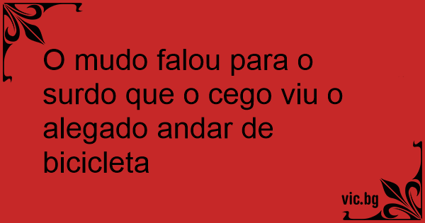 O mudo falou para o surdo que o cego viu o alegado andar de bicicleta