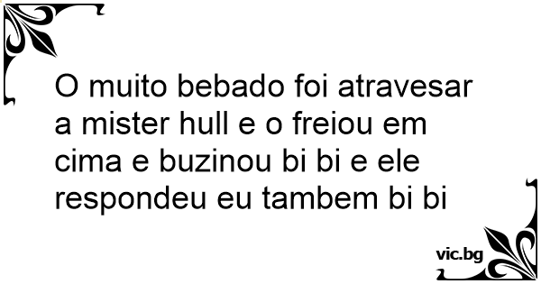 O muito bebado foi atravesar a mister hull e o freiou em cima e buzinou bi bi e ele respondeu eu tambem bi bi