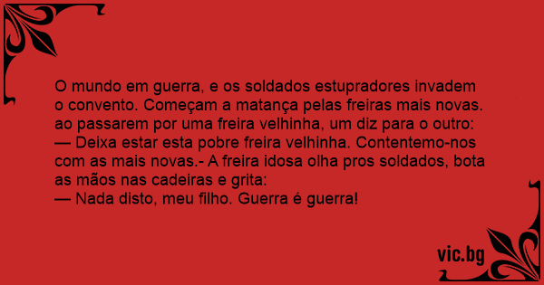 — Deixa estar esta pobre freira velhinha. Contentemo-nos com as mais novas.- A freira idosa olha pros soldados, bota as mãos nas cadeiras e grita: