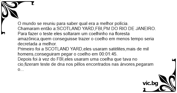 Chamaram então a:SCOTLAND YARD,FBI,PM DO RIO DE JANEIRO.