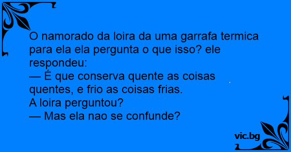 O namorado da loira da uma garrafa termica para ela ela pergunta o que isso? ele respondeu: