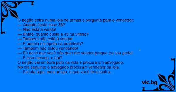 O negão entra numa loja de armas e pergunta para o vendedor: