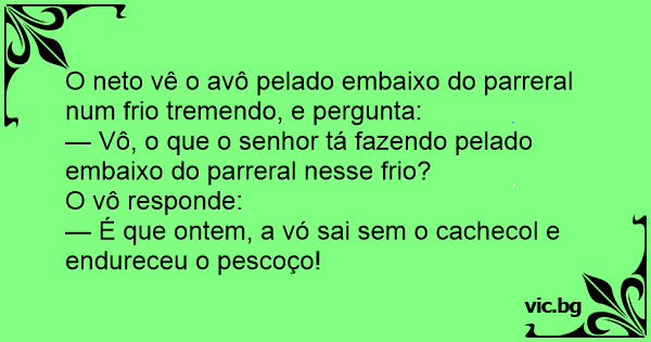 O neto vê o avô pelado embaixo do parreral num frio tremendo, e pergunta: