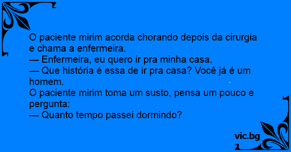 — Enfermeira, eu quero ir pra minha casa.