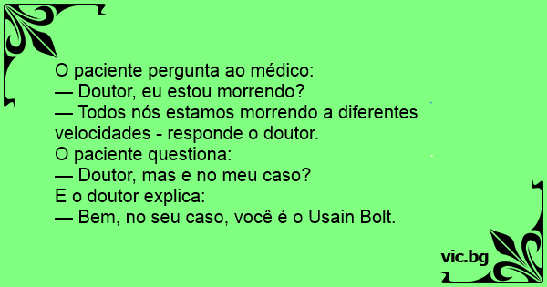 — Todos nós estamos morrendo a diferentes velocidades - responde o doutor.