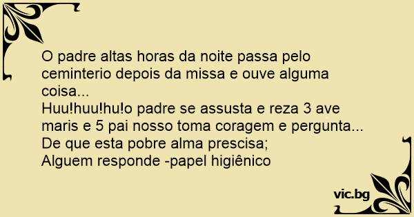 Huu!huu!hu!o padre se assusta e reza 3 ave maris e 5 pai nosso toma coragem e pergunta...