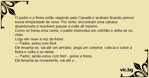 — Padre, ainda estou com muito frio! - geme a freira, pela terceira vez.