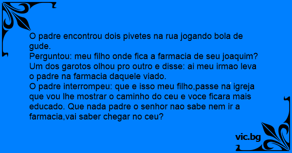 Um dos garotos olhou pro outro e disse: ai meu irmao leva o padre na farmacia daquele viаdо.