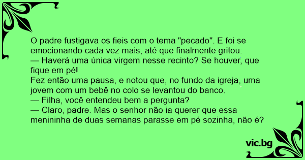 — Haverá uma única virgem nesse recinto? Se houver, que fique em pé!