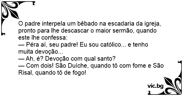 — Com dois! São Duíche, quando tô com fome e São Risal, quando tô de fogo!