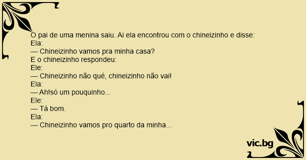 O pai de uma menina saiu. Ai ela encontrou com o chineizinho e disse: