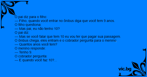 — Filho, quando você entrar no ônibus diga que você tem 9 anos.