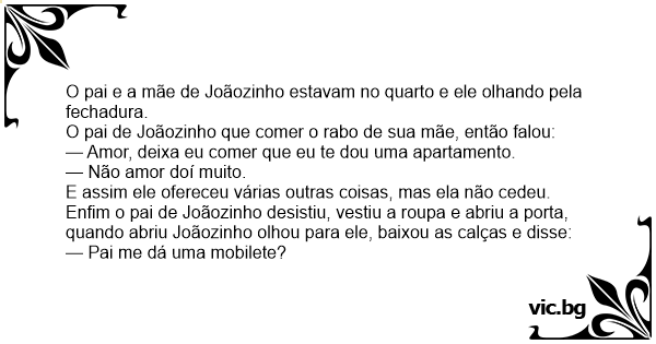 O pai de Joãozinho que comer o rаво de sua mãe, então falou: