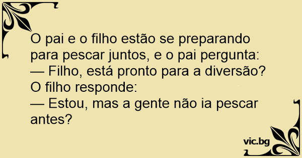 O pai e o filho estão se preparando para pescar juntos, e o pai pergunta: