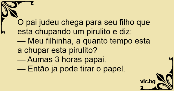 O pai judeu chega para seu filho que esta chupando um pirulito e diz: