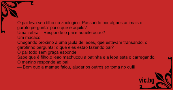 O pai leva seu filho no zoologico. Passando por alguns animais o garoto pergunta: pai o que e aquilo?