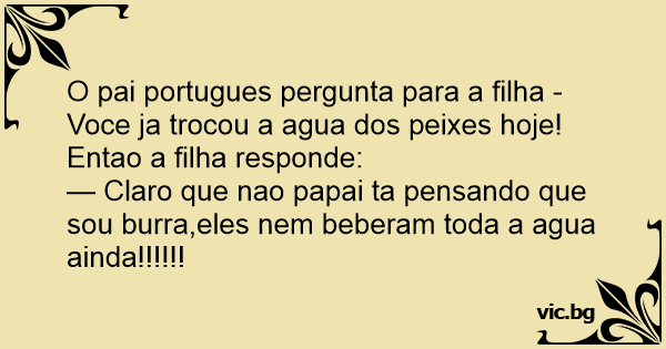 O pai portugues pergunta para a filha -Voce ja trocou a agua dos peixes hoje!