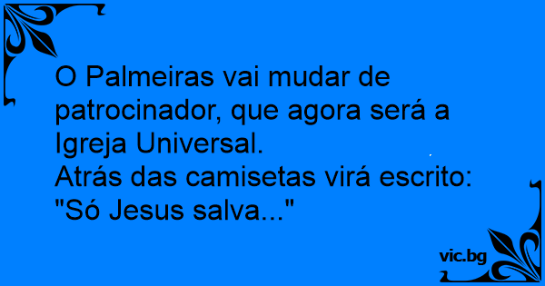O Palmeiras vai mudar de patrocinador, que agora será a Igreja Universal.