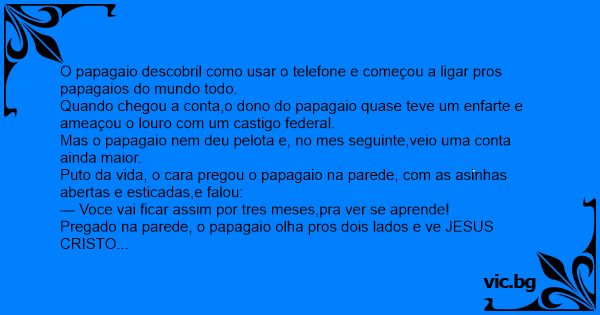 Pregado na parede, o papagaio olha pros dois lados e ve JESUS CRISTO pregado em uma cruz e pergunta :