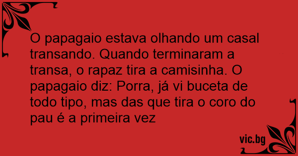 O papagaio estava olhando um casal transando. Quando terminaram a transa, o rapaz tira a camisinha. O papagaio diz: Роrrа, já vi вuсета de todo tipo, mas das que tira o coro do раu é a primeira vez