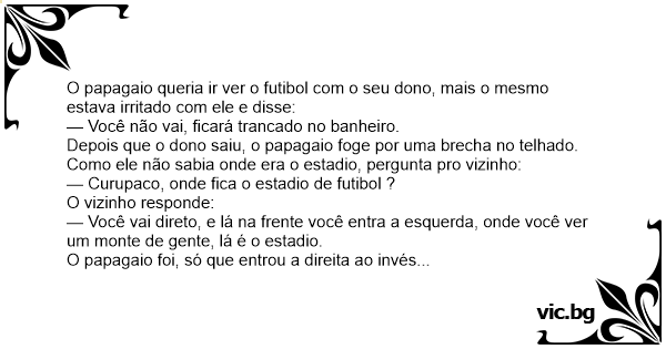 O papagaio queria ir ver o futibol com o seu dono, mais o mesmo estava irritado com ele e disse: