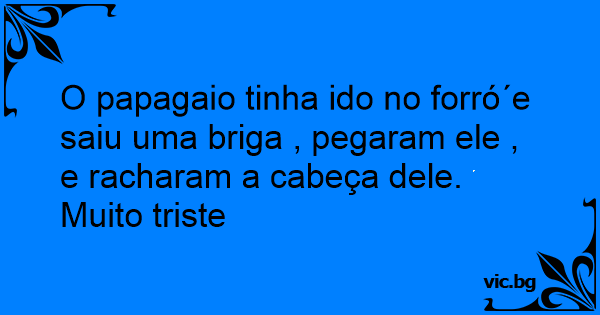 O papagaio tinha ido no forró´e saiu uma briga , pegaram ele , e racharam a cabeça dele.