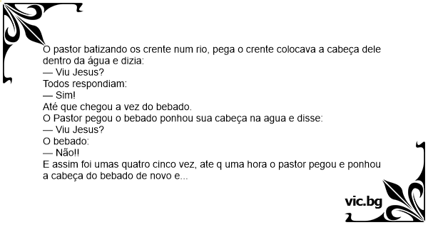 O Pastor pegou o bebado ponhou sua cabeça na agua e disse: