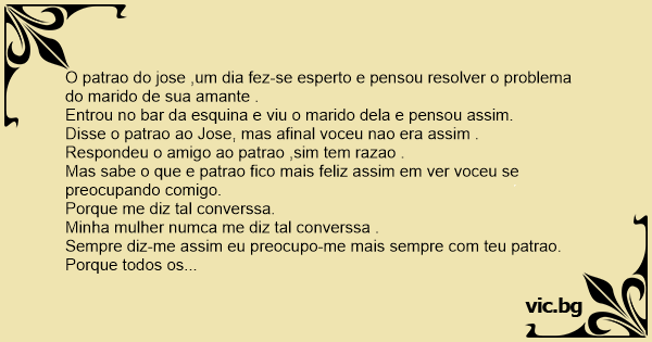 O patrao do jose ,um dia fez-se esperto e pensou resolver o problema do marido de sua amante .
