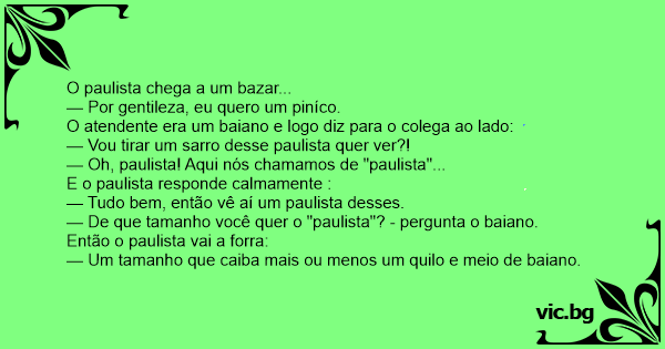 — De que tamanho você quer o "paulista"? - pergunta o baiano.