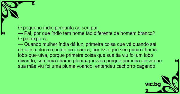 — Pai, por que índio tem nome tão diferente de homem branco?