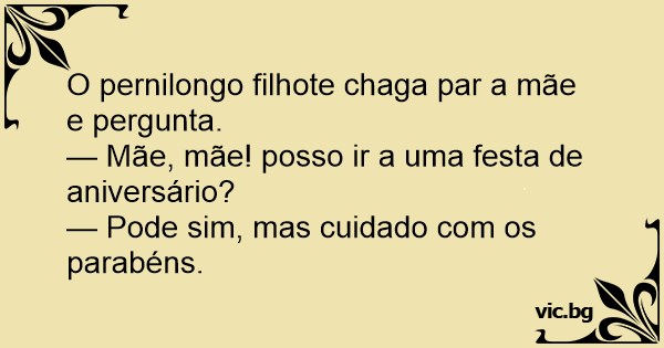 — Mãe, mãe! posso ir a uma festa de aniversário?