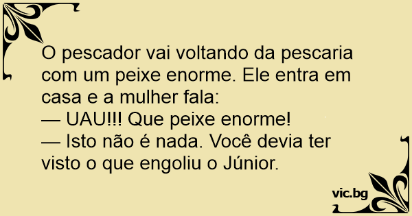 O pescador vai voltando da pescaria com um peixe enorme. Ele entra em casa e a mulher fala: