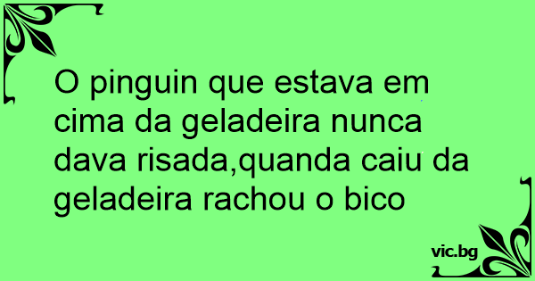 O pinguin que estava em cima da geladeira nunca dava risada,quanda caiu da geladeira rachou o bico