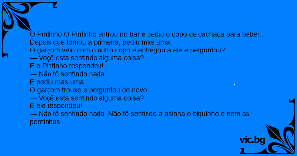 O Pintinho O Pintinho entrou no bar e pediu o copo de cachaça para beber.