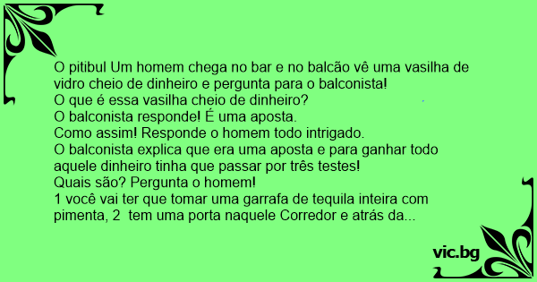 O pitibul Um homem chega no bar e no balcão vê uma vasilha de vidro cheio de dinheiro e pergunta para o balconista!