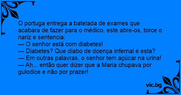 O portuga entrega a batelada de exames que acabara de fazer para o médico, este abre-os, torce o nariz e sentencia: