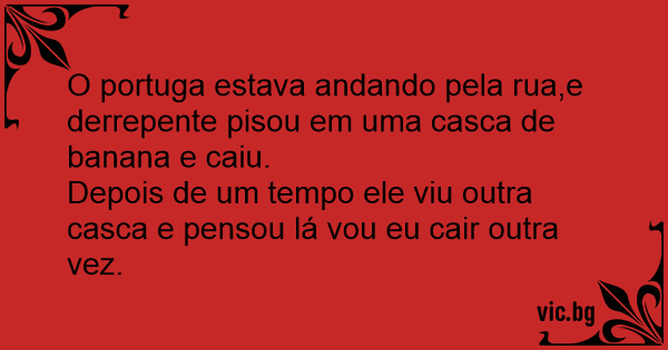 O portuga estava andando pela rua,e derrepente pisou em uma casca de banana e caiu.
