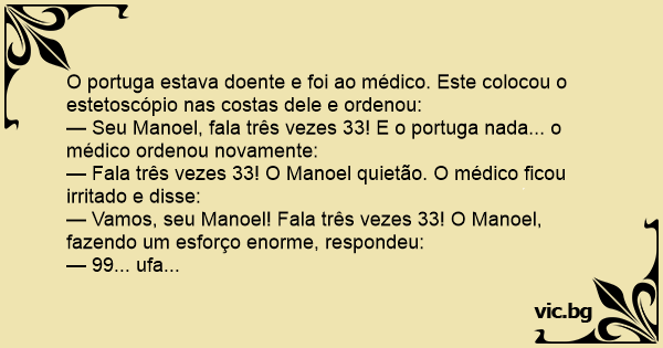 — Seu Manoel, fala três vezes 33! E o portuga nada... o médico ordenou novamente: