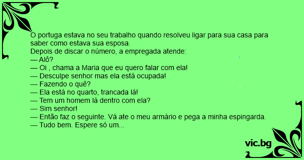 O portuga estava no seu trabalho quando resolveu ligar para sua casa para saber como estava sua esposa.
