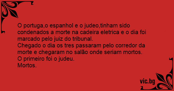 O portuga,o espanhol e o judeo,tinham sido condenados a morte na cadeira eletrica e o dia foi marcado pelo juiz do tribunal.