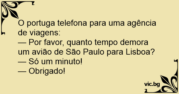 — Por favor, quanto tempo demora um avião de São Paulo para Lisboa?
