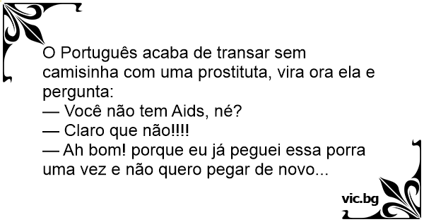 O Português acaba de transar sem camisinha com uma prostituta, vira ora ela e pergunta: