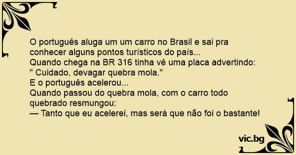 Quando passou do quebra mola, com o carro todo quebrado resmungou: