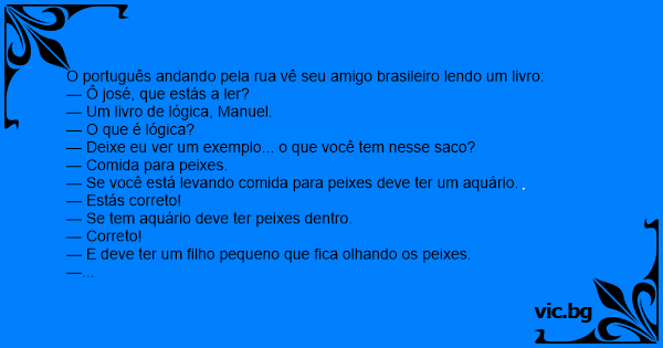 O português andando pela rua vê seu amigo brasileiro lendo um livro: