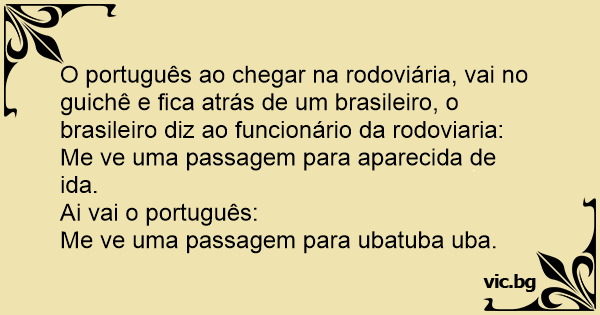 O português ao chegar na rodoviária, vai no guichê e fiса atrás de um brasileiro, o brasileiro diz ao funcionário da rodoviaria: